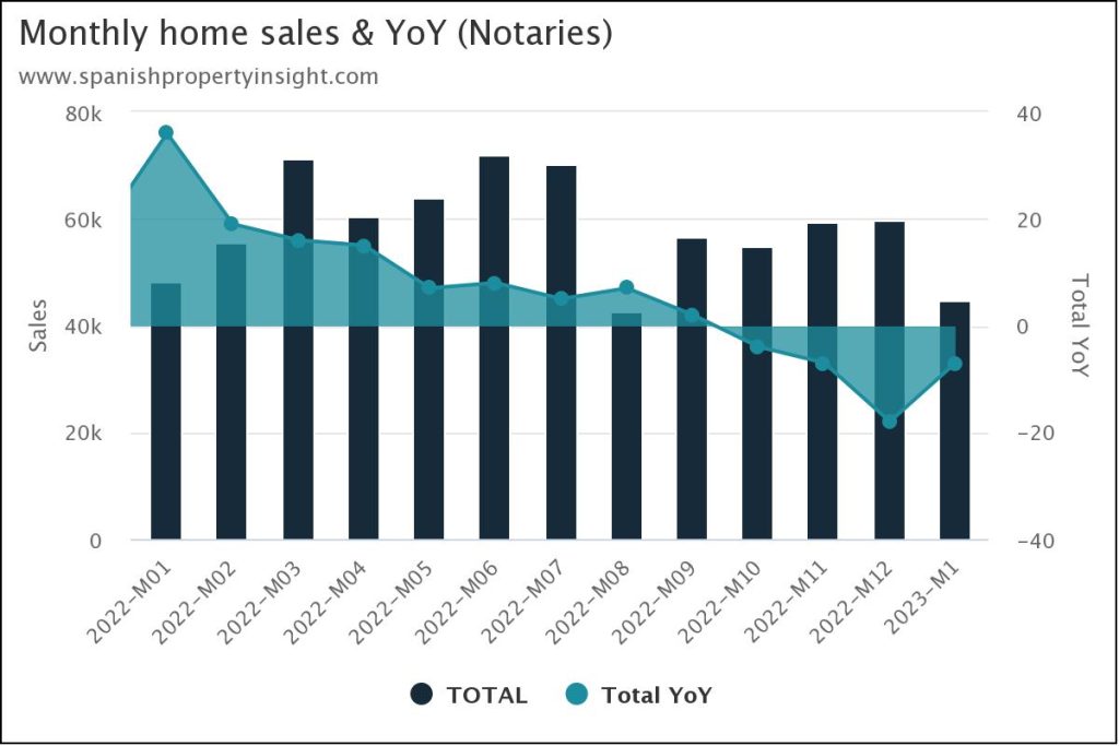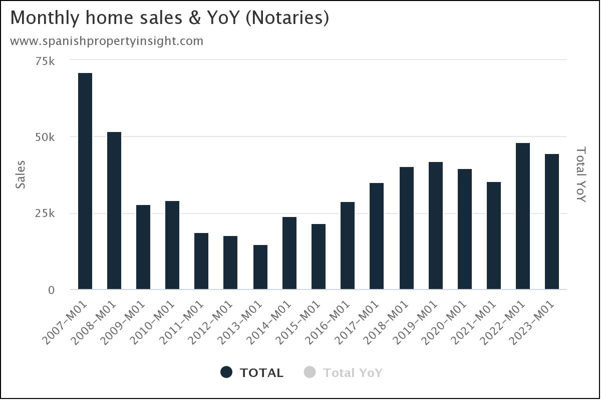 There were 44,569 home sales witnessed by notaries in January, a decline of 7% on the year before, according to the latest data from the notaries’ association.