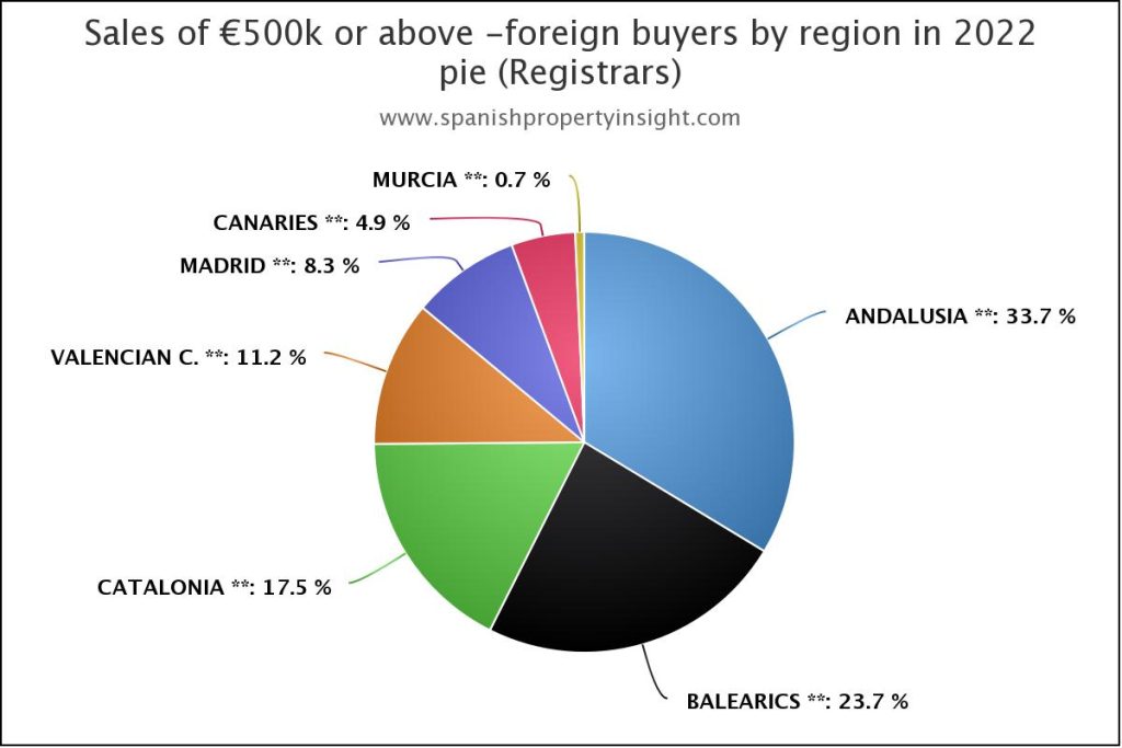 The percentage of foreign buyers spending half a million euro and up on Spanish property rose to 10% for the first time in 2022.