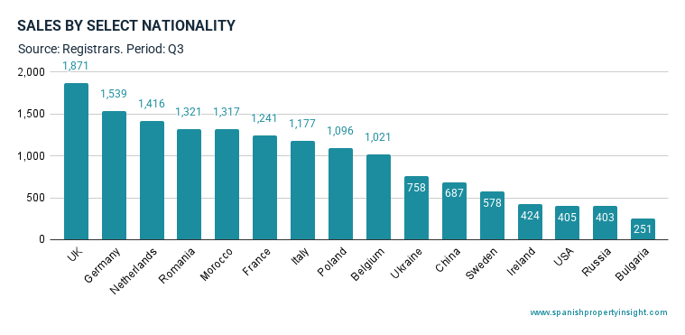 The British retained their long-standing position as the largest group of foreign buyers, with 1,871 purchases — roughly 8% of all foreign transactions — despite an 11% year-on-year decline.