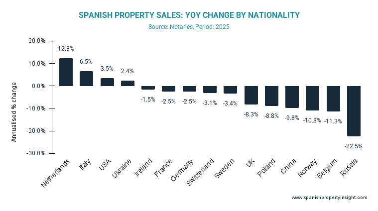 However, the full-year numbers hide a weakening trend as the year progressed. Looking just at the second half of 2025, foreign purchases were down 4.4% year-on-year, with double-digit declines from several key markets including Belgium, the UK, Russia and China. Only a handful of countries—most notably Italy and the Netherlands—managed to record growth during this period.
