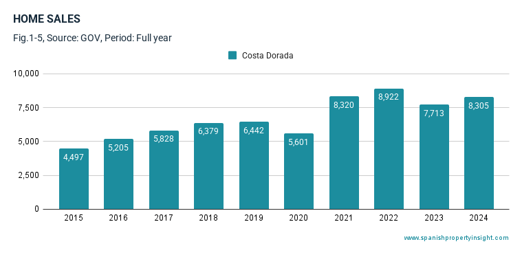 The Costa Dorada housing market in 2024 remained buoyant overall, supported by steady transaction volumes, solid demand from international and domestic buyers, and long-term price appreciation. However, the decline in mortgage activity and new housing starts signals a transitional phase marked by elevated borrowing costs and cautious new development.