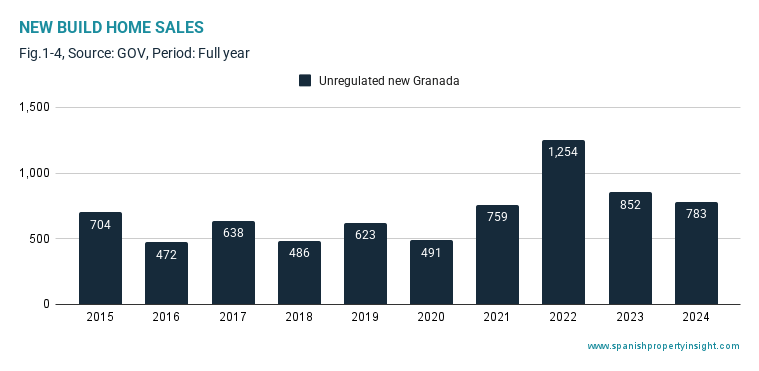 Within Costa Tropical municipalities specifically, 2,075 home sales were registered in 2024, a small increase of 4% year-on-year and 11% above the ten-year average (Fig. 1-5). This confirms continued demand specific to this submarket of the wider Granada coastal region.