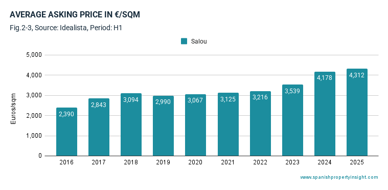 - Asking prices in Salou rose 9%, with long-term appreciation of 31%.