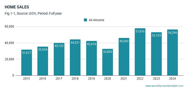- Total home sales in Alicante rose by 6% to over 56,000, driven by continued demand, particularly in established markets.