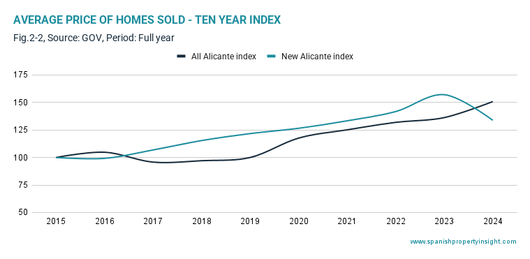 The average price of homes sold in Alicante during the period was €168,678, representing a 10% increase year-on-year (Fig. 2-1).