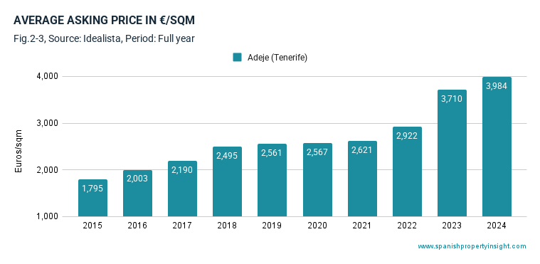 - Asking prices in Adeje increased 7% year-on-year and have more than doubled over ten years.